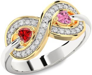 Ruby and Pink Sapphire Flower and Infinity Rings Jul Ruby