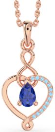 Blue Sapphire & Aquamarine Rose Gold Heart Infinity Necklace