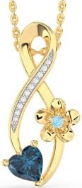 Diamond London Blue Topaz & Aquamarine Gold Silver Infinity Heart Flower Necklace