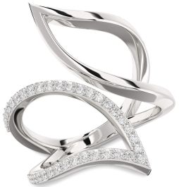 Sculptural and bold, this contemporary ring draws inspiration from natural forms, with two sweeping leaf-like shapes that curve upward in elegant harmony. One sleek arc sparkles with radiant accents, while the other remains polished and pure, creating balance and contrast. A striking expression of individuality and grace, this design celebrates organic beauty and artistic style.