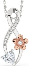 Diamond White Rose Gold Infinity Heart Flower Necklace