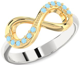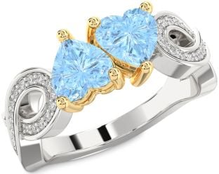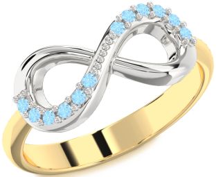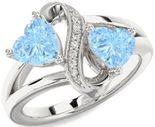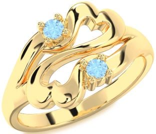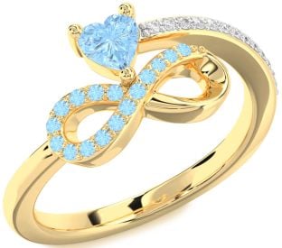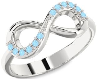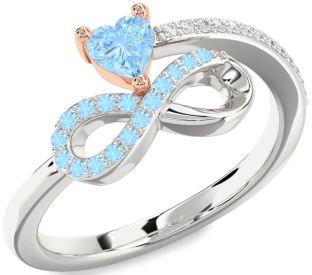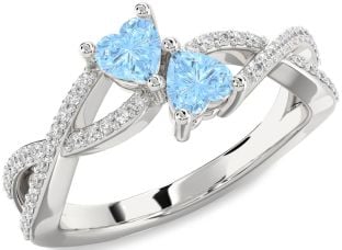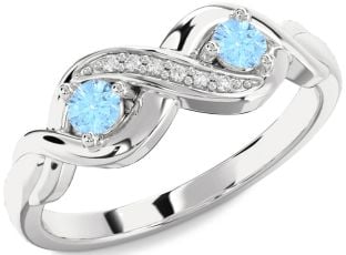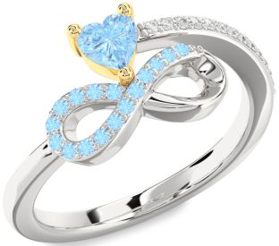 Aquamarine Infinity, Solitaire and Bear Rings Jul Ruby
