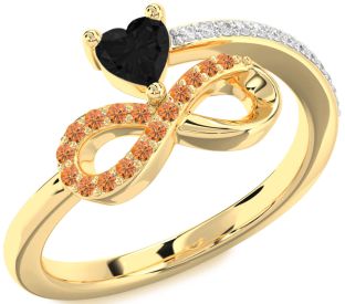 Black Diamond and Citrine Infinity, Solitaire and Interlock Rings Jul Ruby