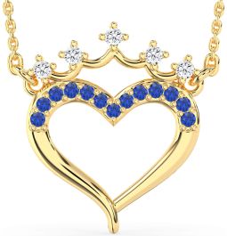 Diamond & Blue Sapphire Gold Heart Crown Necklace
