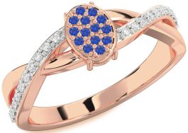 Diamond Blue Sapphire Rose Gold Silver Knot Round Promise Ring