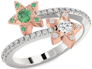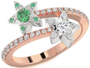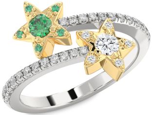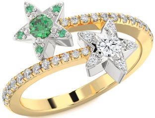 Emerald, Diamond and Gemstone Star, Circle, Lock and Interlock Rings Jul Ruby
