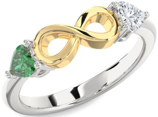 Emerald and Diamond Infinity and Interlock Rings Jul Ruby