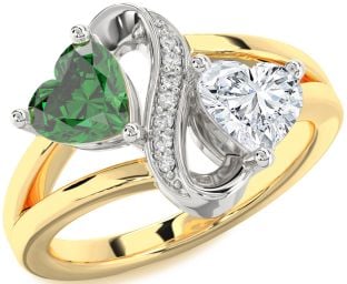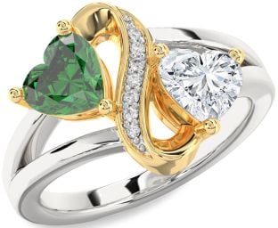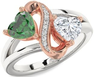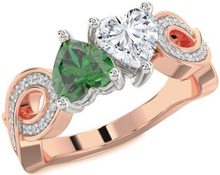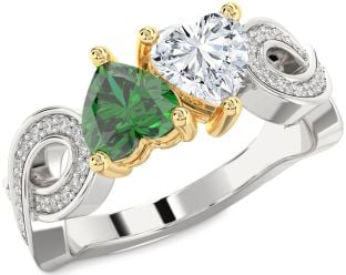 Emerald and Diamond Infinity and Interlock Rings Jul Ruby