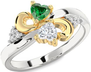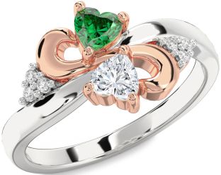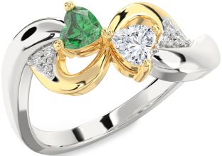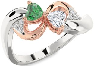 Emerald and Diamond Infinity and Interlock Rings Jul Ruby