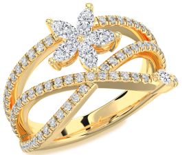 Diamond Gold Flower Marquise Two Stone Ring
