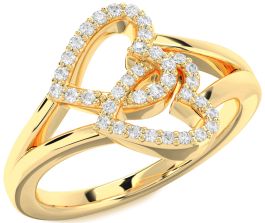 This romantic promise ring showcases two intertwined open-heart motifs encrusted with dazzling round-cut diamonds, elegantly set in polished yellow gold. The graceful fusion of the hearts captures a bond of eternal love and deep affection. This radiant promise ring is the perfect expression of heartfelt commitment, symbolizing a journey of love shared forever.