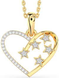 This celestial-inspired pendant features an open heart design illuminated by five twinkling stars, each dotted with radiant accents. A shimmering arc traces one side of the heart, adding brilliance to its graceful outline. Evoking dreams, love, and the magic of wonder, this piece is a perfect symbol of someone who lights up your life—guiding like a constellation across the heart’s sky.