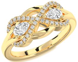 This enchanting Promise ring showcases an elegant infinity-inspired design, crafted in polished yellow gold. Pavé-set diamonds trace the looping curves, adding brilliance and sophistication. At the center, two pear-shaped stones—one sparkling white and the other soft pink—symbolize two hearts united in everlasting love. A beautiful expression of commitment and connection.