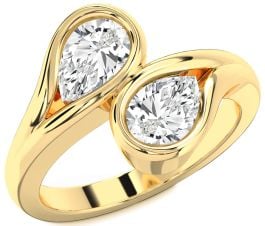 This exquisite Promise ring features a graceful bypass design crafted in radiant yellow gold. Two bezel-set pear-shaped stones—one a vivid green, the other a brilliant white—represent two souls uniting in harmony. The flowing curves of the band evoke connection and balance, creating a timeless silhouette that blends elegance with heartfelt symbolism.