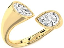 This stunning Promise ring features a graceful bypass design in lustrous yellow gold, showcasing two beautifully bezel-set pear-shaped gemstones. One stone dazzles in deep violet, while the other sparkles in brilliant white, symbolizing unity through contrast. Sleek and modern, this ring is the perfect representation of love and commitment in a timeless, contemporary form.