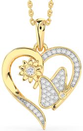 Diamond Gold Silver Heart Butterfly Flower Necklace