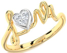 Celebrate love with this charming promise ring, where elegance meets heartfelt expression. The ring features a graceful script design that spells out “love,” highlighted by a stunning heart-shaped diamond nestled within the lettering. Crafted in radiant yellow gold, this promise ring symbolizes a timeless bond and commitment, making it the perfect token of affection and devotion.
