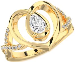 Diamond Gold Silver Heart Solitaire Engagement Ring