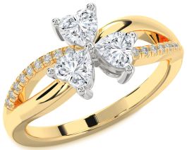 Diamond Gold Silver Shamrock Heart Three Stone Ring