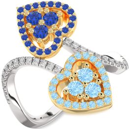 Diamond Gold Silver Heart Two Stone Pave Promise Ring