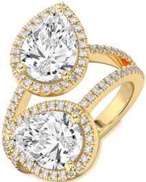 Diamond Gold Silver Pear Two Stone Pave Ring