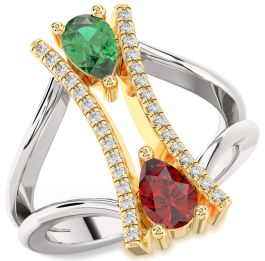 Diamond Gold Silver Pear Two Stone Promise Ring