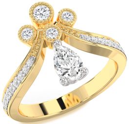 This vibrant Promise ring features a dazzling pear-cut yellow gemstone as its focal point, accented above by a trio of bezel-set round stones—two white and one light blue—for a colorful, playful flair. The split shank is adorned with pavé diamonds, enhancing the ring’s brilliance. Crafted in yellow gold, this Promise ring beautifully celebrates joyful commitment and individuality.