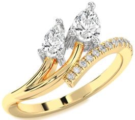 This Promise ring features a graceful bypass design in polished yellow gold, adorned with two pear-shaped stones—one in soft pink and the other in brilliant white—representing two hearts intertwined. A shimmering pavé diamond-accented shank sweeps around the centerpiece, adding brilliance and charm. This modern yet romantic ring is a timeless expression of love, unity, and meaningful commitment.