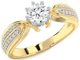 Diamond Gold Silver Round Solitaire Pave Engagement Ring