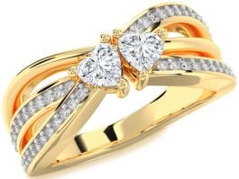 This exquisite promise ring showcases two heart-shaped stones positioned side by side, beautifully symbolizing the union of two souls. The polished gold band is adorned with rows of dazzling pavé-set accents that sweep gracefully around the centerpiece, adding depth and radiance. A timeless expression of commitment, this ring captures the essence of everlasting love.