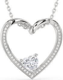Sleek and luminous, this pendant forms a heart that gracefully frames a brilliant center accent, resting gently at the base. A fine trail of shimmering detail adds radiance along the heart's edge, enhancing its graceful curves. Symbolizing enduring love with quiet strength, this piece speaks of tenderness, trust, and the beauty of a heart that holds another close forever.