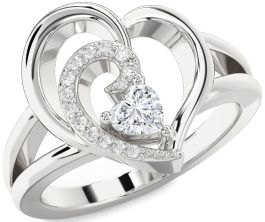Celebrate your love with this captivating promise ring, showcasing a heart-shaped center stone cradled within a polished open-heart design. A graceful ribbon of shimmering pavé-set stones sweeps along the inner curve, symbolizing the beauty of unity and connection. This timeless piece radiates elegance and warmth, making it a cherished emblem of enduring love and heartfelt devotion.