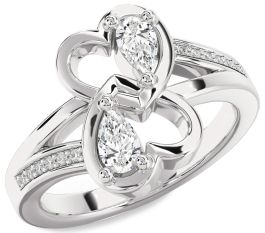 This charming promise ring features two pear-shaped gemstones—one in delicate pink and the other in sparkling white—gracefully embraced by heart outlines in polished yellow gold. The split band is accented with shimmering pavé-set diamonds, adding a radiant touch of elegance. A beautiful promise ring symbolizing love, duality, and cherished connection.