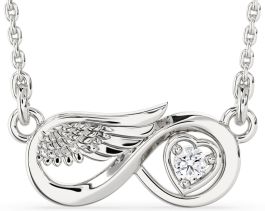Diamond Platinum Infinity Wings Heart Necklace