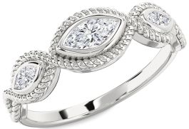 Diamond Platinum Knot Marquise Three Stone Engagement Ring