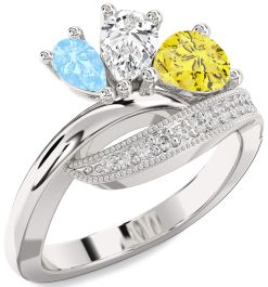 This Mother’s ring radiates elegance and strength, with three gleaming stones representing the unbreakable bond between a mother and her children. The central pear-cut gem symbolizes her nurturing heart, gently flanked by round gems—each capturing a child’s unique spirit. A luminous channel of accent stones flows beneath, like the unwavering path of love that guides every family moment.