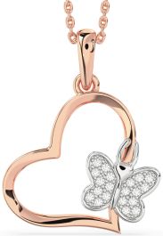 Diamond Platinum & Rose Gold Heart Butterfly Necklace