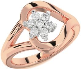 Diamond Platinum & Rose Gold Heart Flower Promise Ring