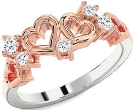 Diamond Platinum & Rose Gold Heart Three Stone Ring
