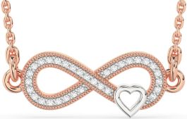 This necklace gracefully weaves together the symbols of love and eternity, creating a design that speaks to devotion without limits. A delicate heart rests within the curve of an infinity loop, symbolizing a promise that endures through time. The sparkling accents and fine detailing enhance its elegance, making this piece a radiant expression of forever love held close to the heart.