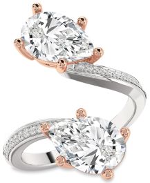 Diamond Platinum & Rose Gold Pear Two Stone Pave Ring