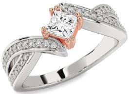 Diamond Platinum & Rose Gold Princess Solitaire Pave Engagement Ring