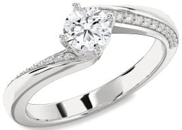 This engagement ring exudes timeless elegance with a modern edge. A brilliant center stone rises above a softly tapered band, while a delicate row of shimmering accents adds a graceful touch of sparkle. With its refined curves and classic composition, this piece is the perfect expression of love that is enduring, understated, and beautifully unforgettable in every way.