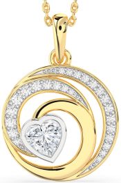 Diamond Platinum & Yellow Gold Circle Heart Necklace