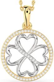 Diamond Platinum & Yellow Gold Clover Circle Necklace