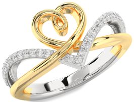 Delicate curves and shimmering elegance define this artistic ring, where a swirling heart motif is gracefully entwined with a flowing ribbon of sparkle. The open silhouette and split band create a light, airy presence, while the asymmetrical design adds a modern flair. A graceful expression of romance, this piece celebrates love’s gentle rhythm and the beauty of heartfelt emotion.