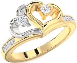 Diamond Platinum & Yellow Gold Heart Two Stone Ring