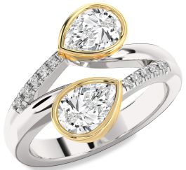 Diamond Platinum & Yellow Gold Pear Two Stone Ring