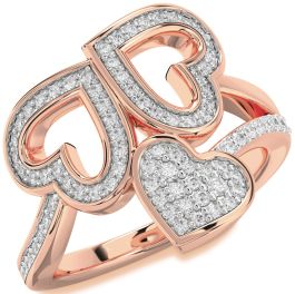 This enchanting promise ring showcases three elegant heart motifs adorned with shimmering pavé-set diamonds, gracefully arranged on a polished yellow gold band. Each heart glistens with micro-set brilliance, while one solid heart is fully encrusted, adding contrast and dimension. Radiating love and luxury, this promise ring is a perfect symbol of enduring affection.