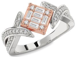 Diamond Rose Gold Silver Baguette Promise Ring